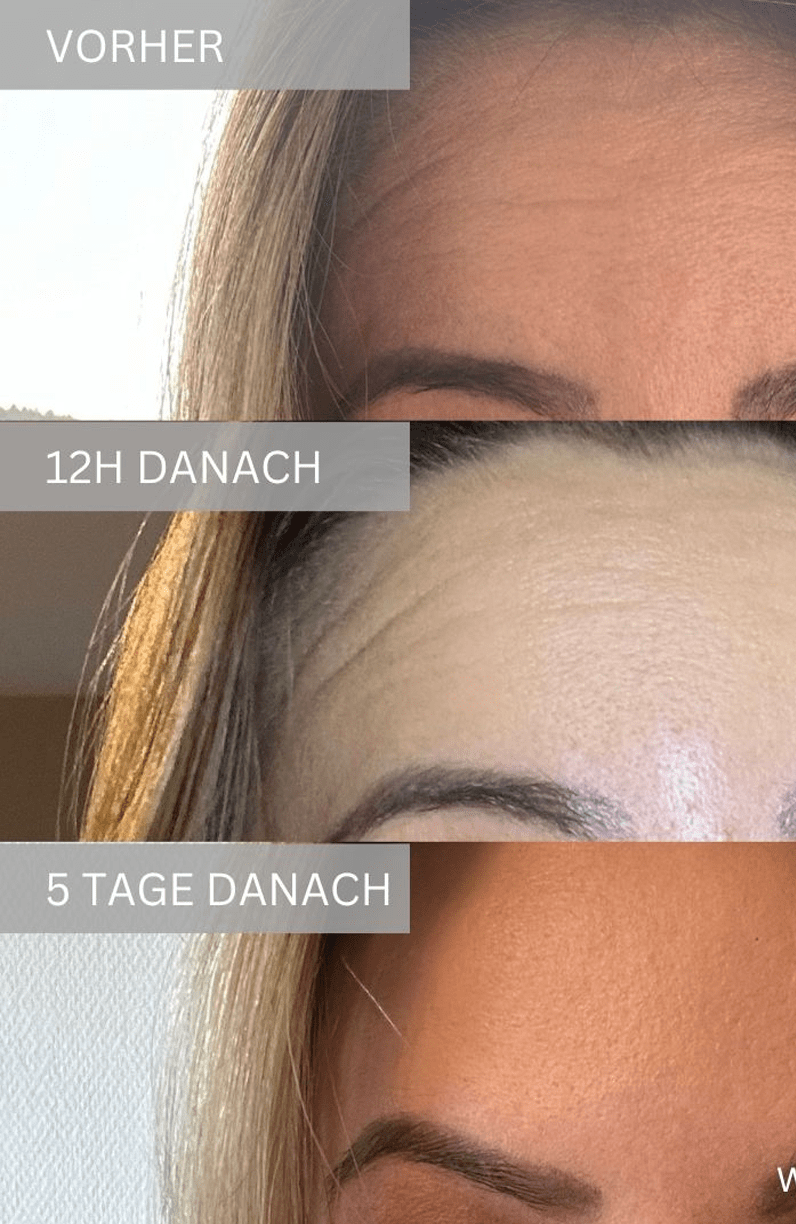 Botulinumtoxin-Injektionen: Glätten feine Linien und Falten auf der Stirn. Diese Behandlung entspannt die Muskeln und reduziert das Erscheinungsbild von Zornesfalten, was zu einem jugendlicheren Aussehen führt.